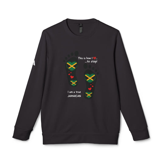 adidas® Unisex Fleece Crewneck Sweatshirt - LoveJustJules Heart-Shaped Flag of Jamaica in Footprints Top - A Fusion of Style, Patriotism, and adidas® Quality