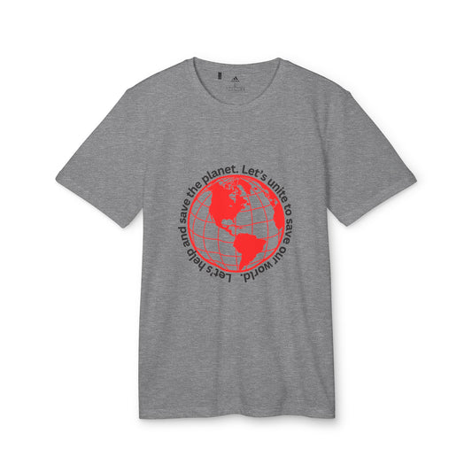 adidas® Unisex Sport T-shirt - Eco-Conscious-Message - Red Outlined World Tee -LoveJustJules - Custom-Designed Apparel
