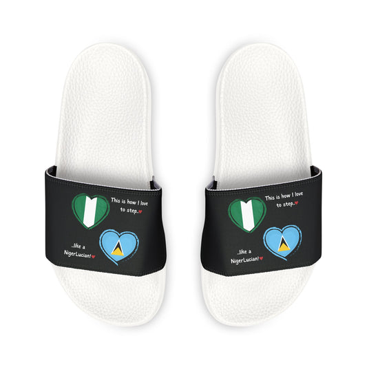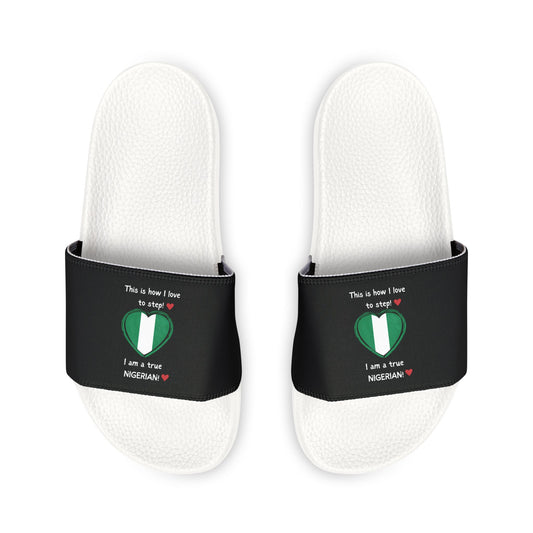 Women's Removable-Strap Sandals - Step into Nigerian pride with our Heart-shaped Nigerian flag slider footwear from LoveJustJules!