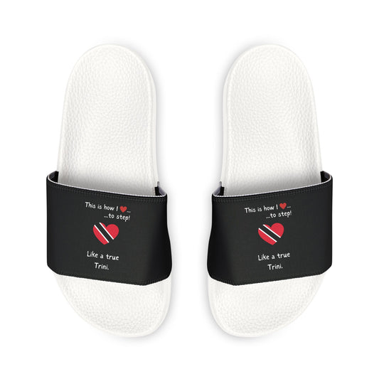 Men's Removable-Strap Sandals - Men's PU Slide Sandals - Step into the vibrant culture of Trinidad and Tobago with our Heart-shaped flag slider footwear from LoveJustJules!