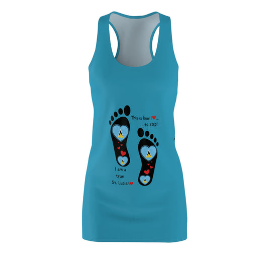 Women’s Cut & Sew Racerback Dress – Front & Back Print Design - St.Lucian Heart-Shaped Flags in Footprints Top | Stylish Heritage Apparel | Lightweight, Flattering Fit