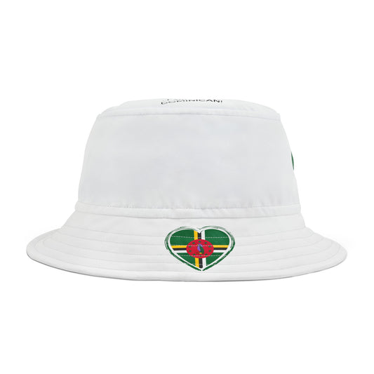 Heart-Shaped Dominica Flag Print Bucket Hat with 'All Up In My Head... I am a True Dominican' Text