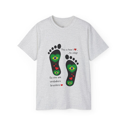 Front and Back Print Design - Brazil Heart-Shaped Flags in Footprints - Unisex Tee-Shirt Gift Idea