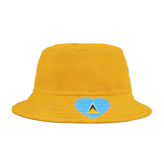 Yellow St. Lucian Heritage Heart-Shaped Flag Bucket Hat with 'All Up In My Head... I am a True St. Lucian' Text
