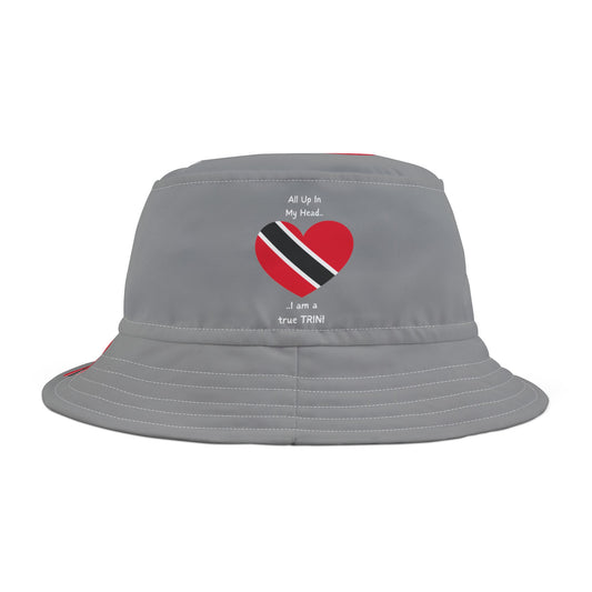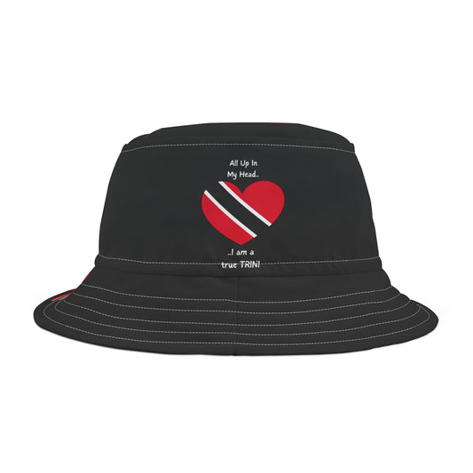 Heart-Shaped Trinidad & Tobago Flag Bucket Hat with 'All Up In My Head... I am a True Trini' Text