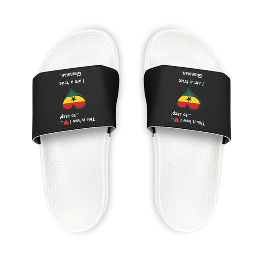 Men's PU Slide Sandals - Step into the vibrant culture of Ghana with our Heart-shaped Ghanaian flag slider footwear from LoveJustJules!