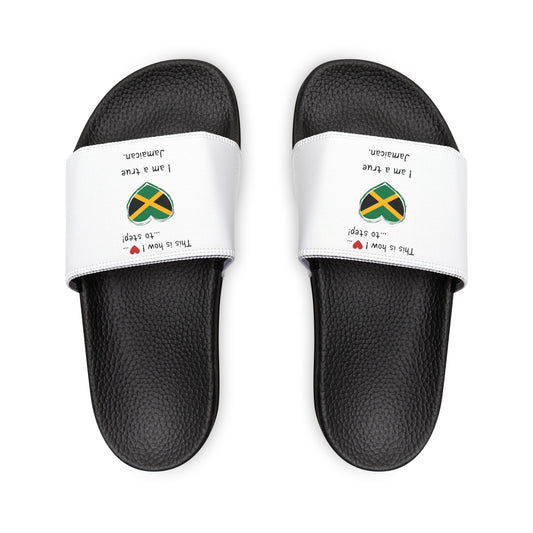 Women's PU Slide Sandals - Step into Jamaican pride with our newly designed Heart-shaped Jamaican flag slider footwear from LoveJustJules!