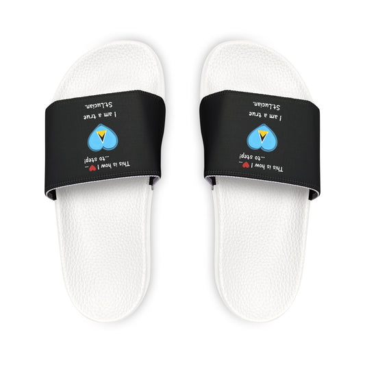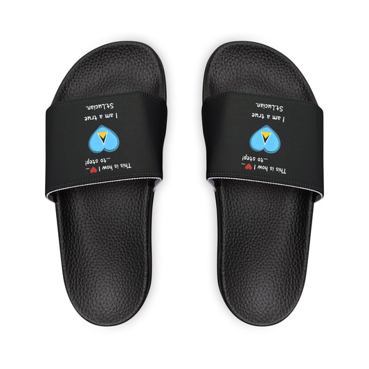 Men's PU Slide Sandals - Step into St. Lucian pride with our newly designed Heart-shaped St. Lucian flag slider footwear from LoveJustJules!
