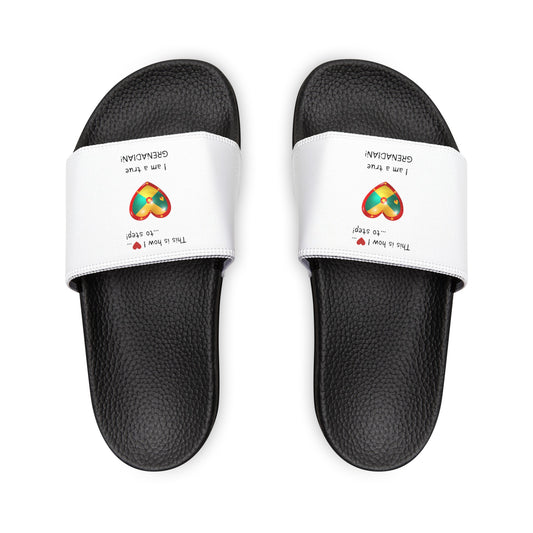 Women's PU Slide Sandals - Step into St. Lucian pride with our newly designed Heart-shaped St. Lucian flag slider footwear from LoveJustJules!