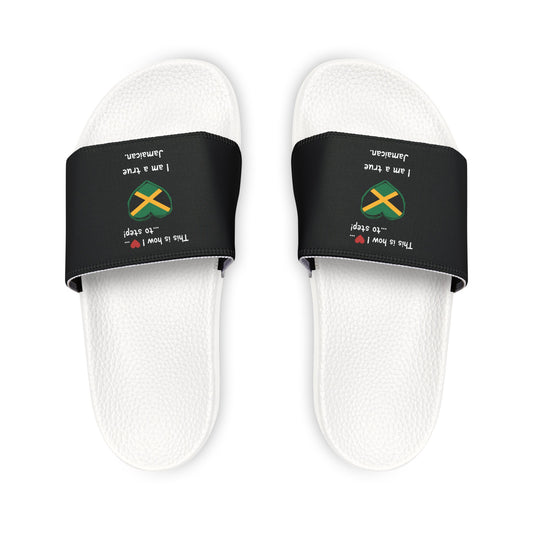 Men's PU Slide Sandals - Step into Jamaican pride with our newly designed Heart-shaped Jamaican flag slider footwear from LoveJustJules!