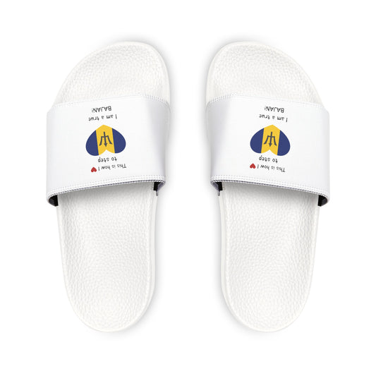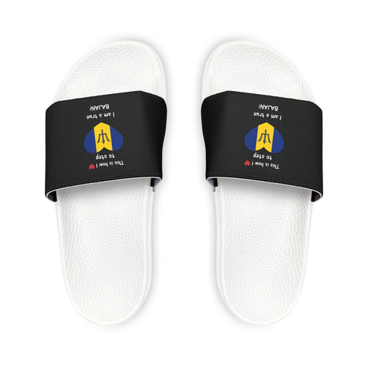 Women's PU Slide Sandals - Walking in Your Bajan Pride - Barbados Heart-Shaped Flag Sliders.