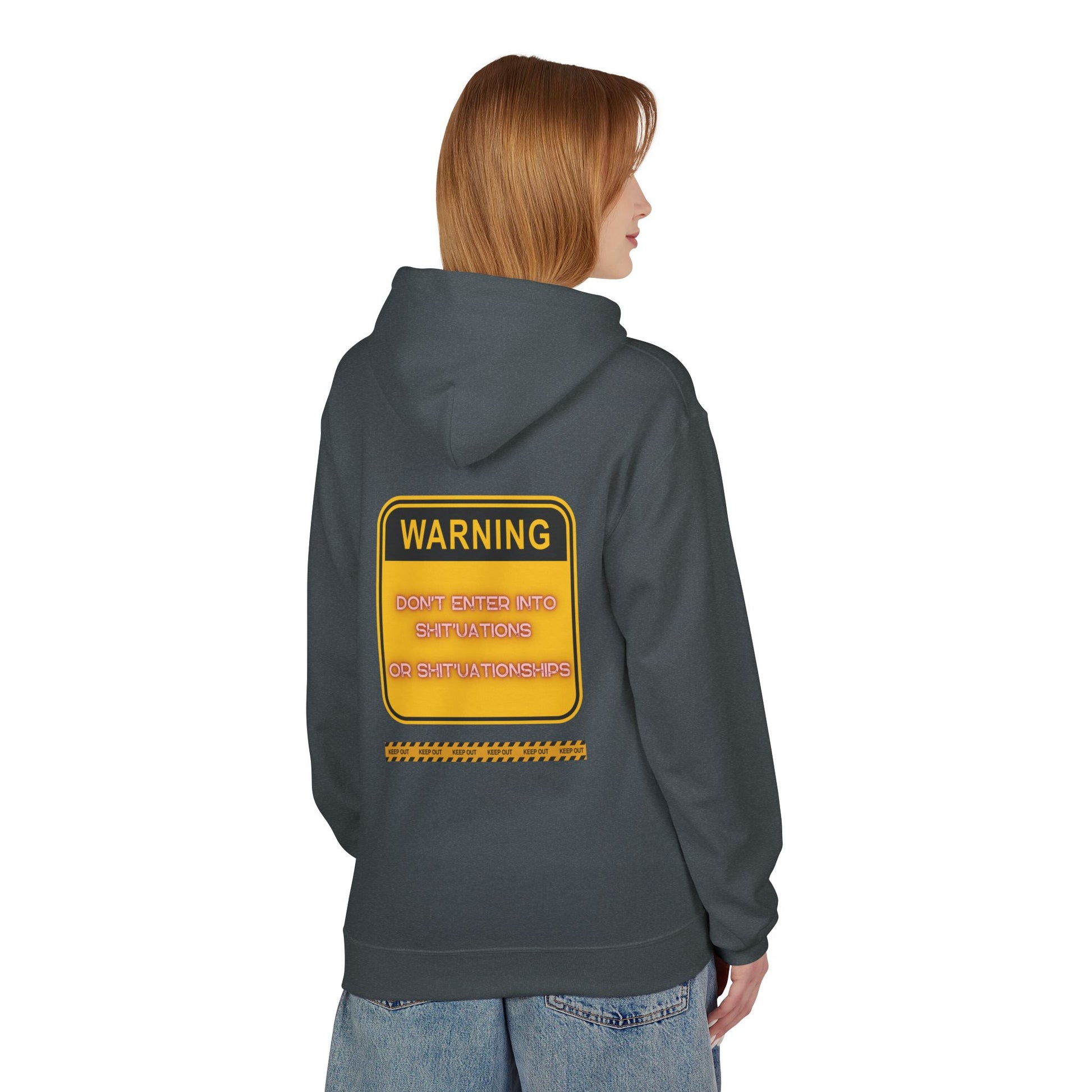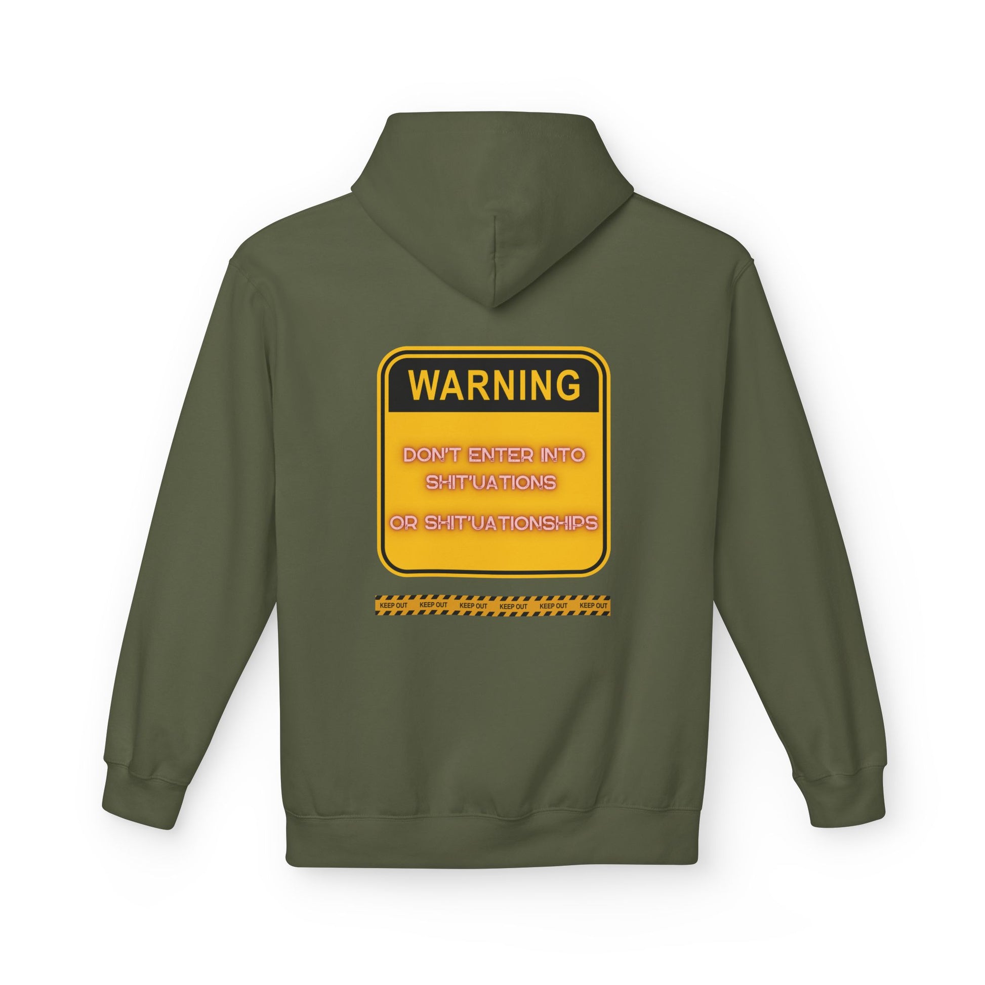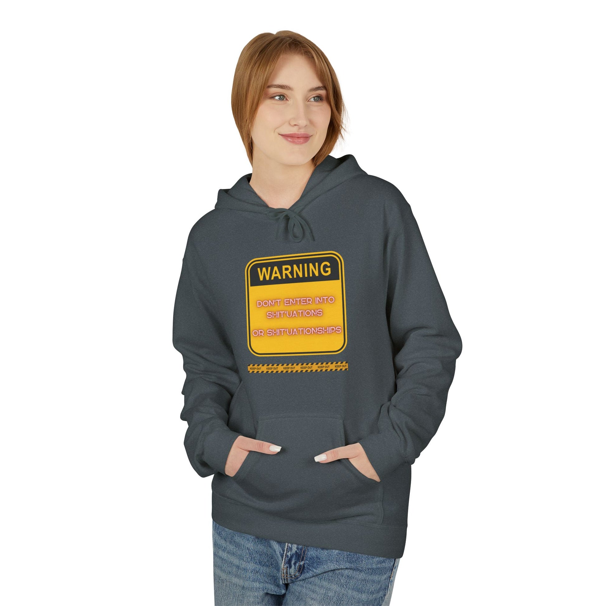 Bold Warning Sign Hoodie -"DON'T ENTER INTO SHIT'UATIONS OR SHIT'UATIONSHIPS!" – Empowering, Humorous, and Stylish Apparel